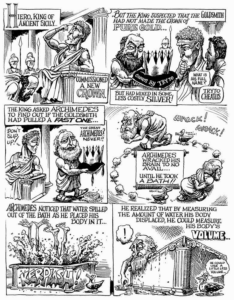 As the story goes Archimedes was buddies with the King of Syracuse, evidently a smart guy in his own right for surrounding himself with intelligent folk (leadership 101 right there!)